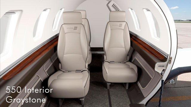 Eclipse offers three standard paint schemes, available in a wide variety of colors. Our standard schemes include the selection of solid, metallic, or mica/pearl finishes with no additional charge. Each standard scheme consists of up to four colors: two main colors (typically top and bottom or forward and aft) and two accent or stripe colors. Custom registration number styles, custom logos or decals, and other customizations (changes to the stripe layout) result in additional charges.